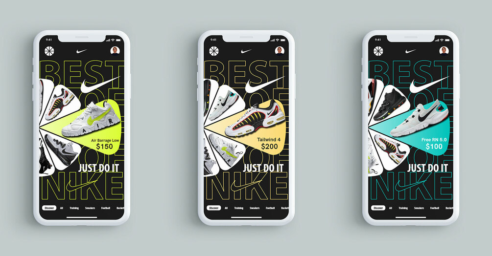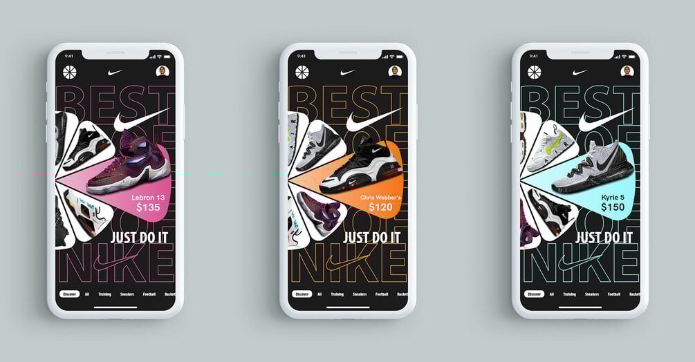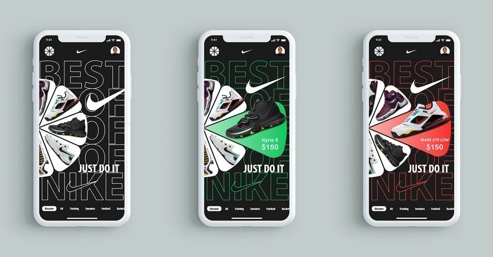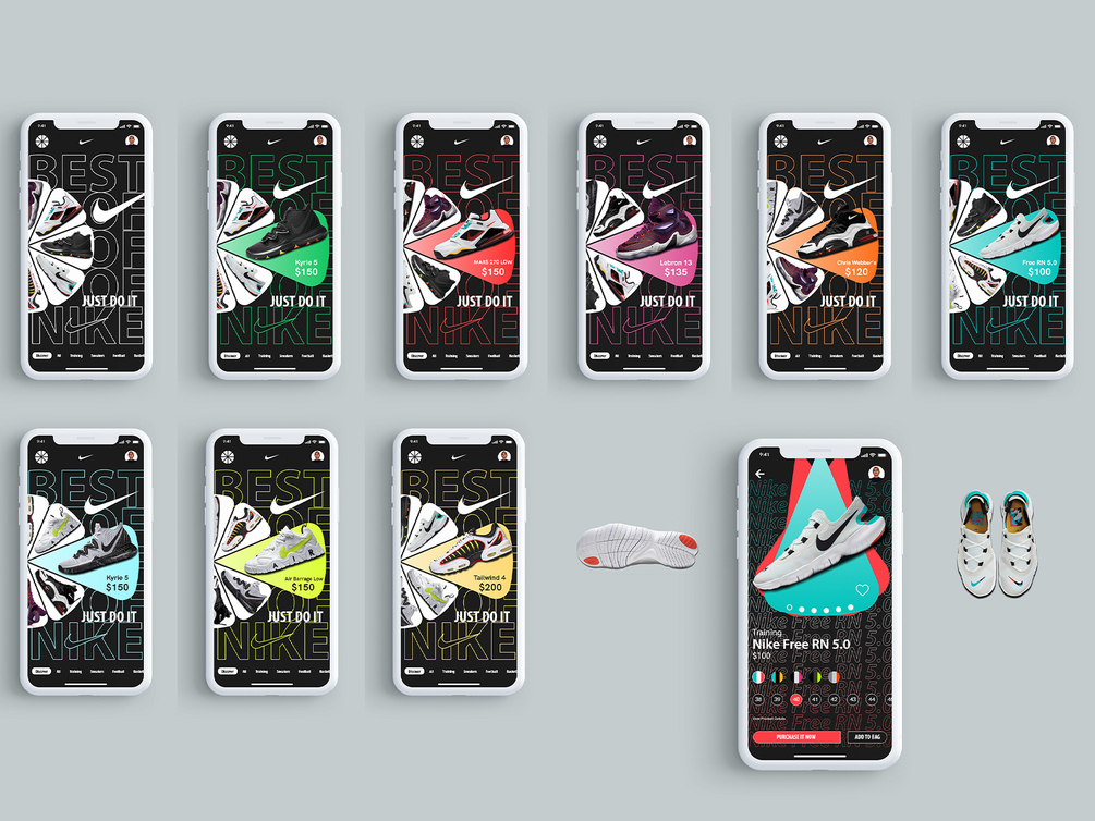 Nike Brand UI UX IPhone X Template (10 artboards)